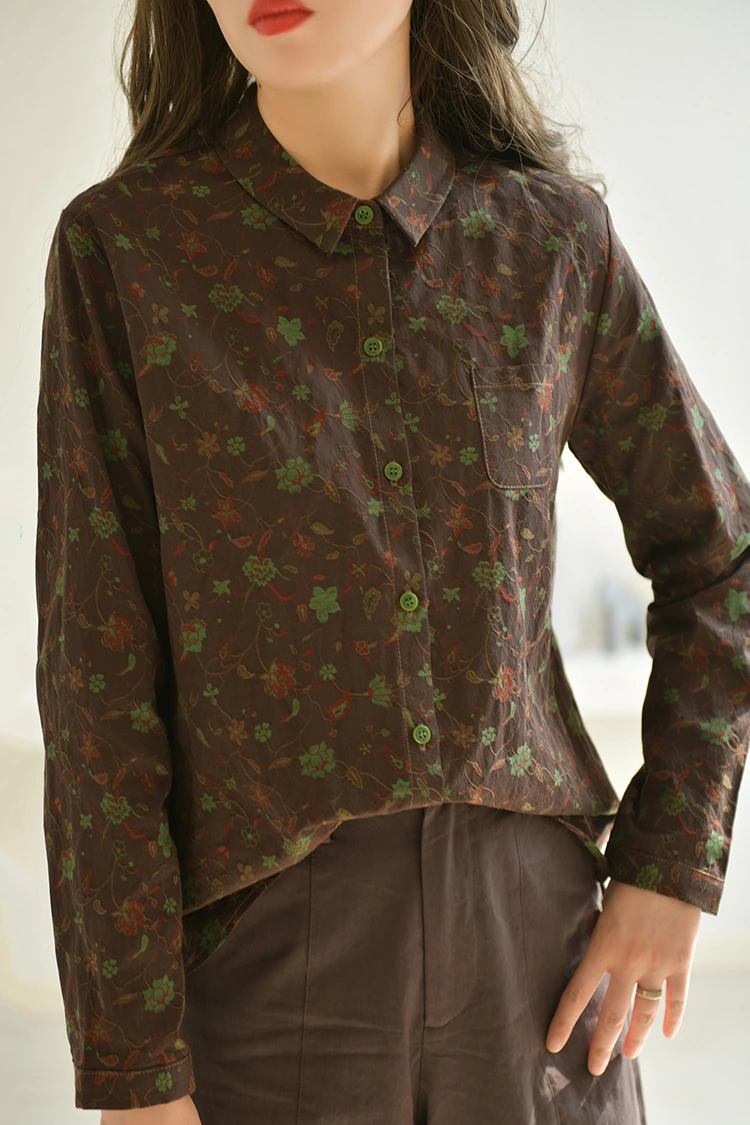 Áo sơ mi nữ in hoa thông thường