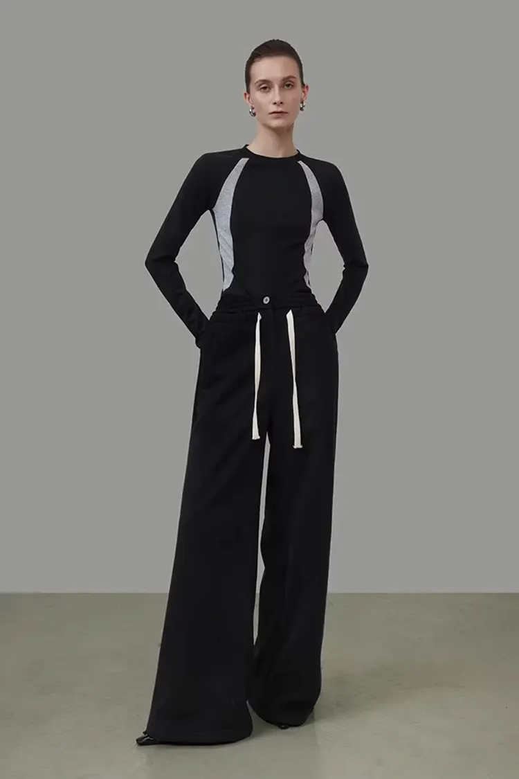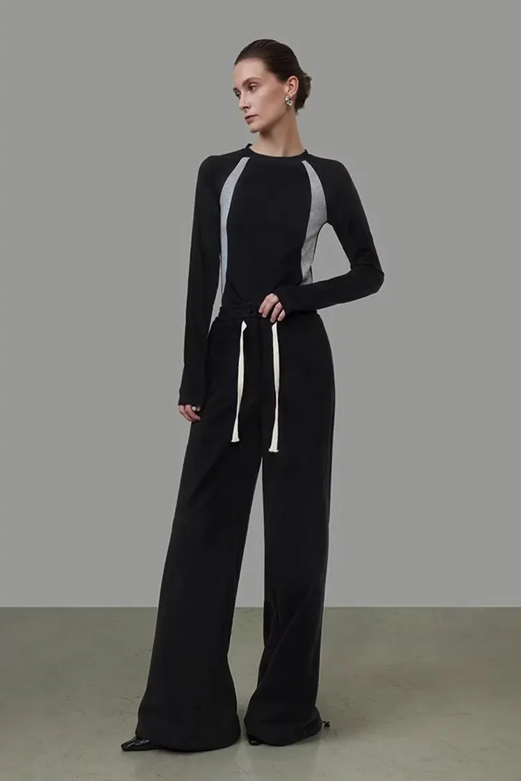 Chúng tôi áp dụng kiểu quần ống rộng hình chữ A siêu nhỏ và đường cắt ba chiều 3D. Sau nhiều lần điều chỉnh các chi tiết, hình dáng đã phù hợp hơn với kiểu dáng cơ thể người châu Á. Thiết kế cạp cao, cạp rộng nâng vòng eo hiệu quả, kết hợp với dây rút rủ xuống tự nhiên, đơn giản, gọn gàng mà không hề cồng kềnh. Kiểu dáng quần có tác dụng mạnh mẽ lên eo, bụng, hông và chân, phù hợp với nhiều dáng người khác nhau, dễ dàng tạo nên vóc dáng thon gọn và khí chất thanh lịch.