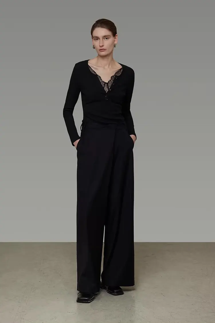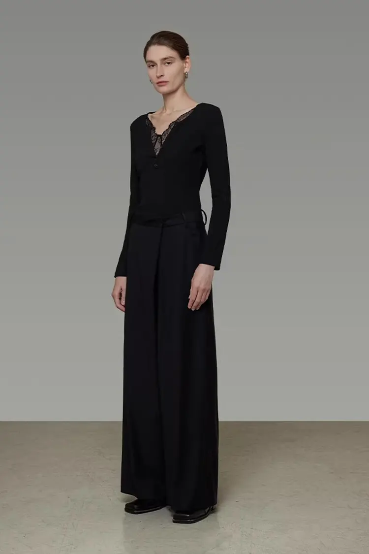 Màu sắc chủ đạo của Áo len ôm cổ chữ V ren nữ là màu đen cổ điển. Nó thời trang, linh hoạt và vượt thời gian, đồng thời có tác dụng giảm béo thị giác mạnh mẽ, cho phép bạn dễ dàng thể hiện vóc dáng gọn gàng và thon thả. Màu đen không phụ thuộc vào tông màu da hay phong cách và có mức độ chấp nhận cuối cùng cực kỳ cao. Đồng thời, nó hỗ trợ tùy chỉnh đầy đủ màu sắc và có thể điều chỉnh linh hoạt theo yêu cầu của thương hiệu và sở thích thị trường.