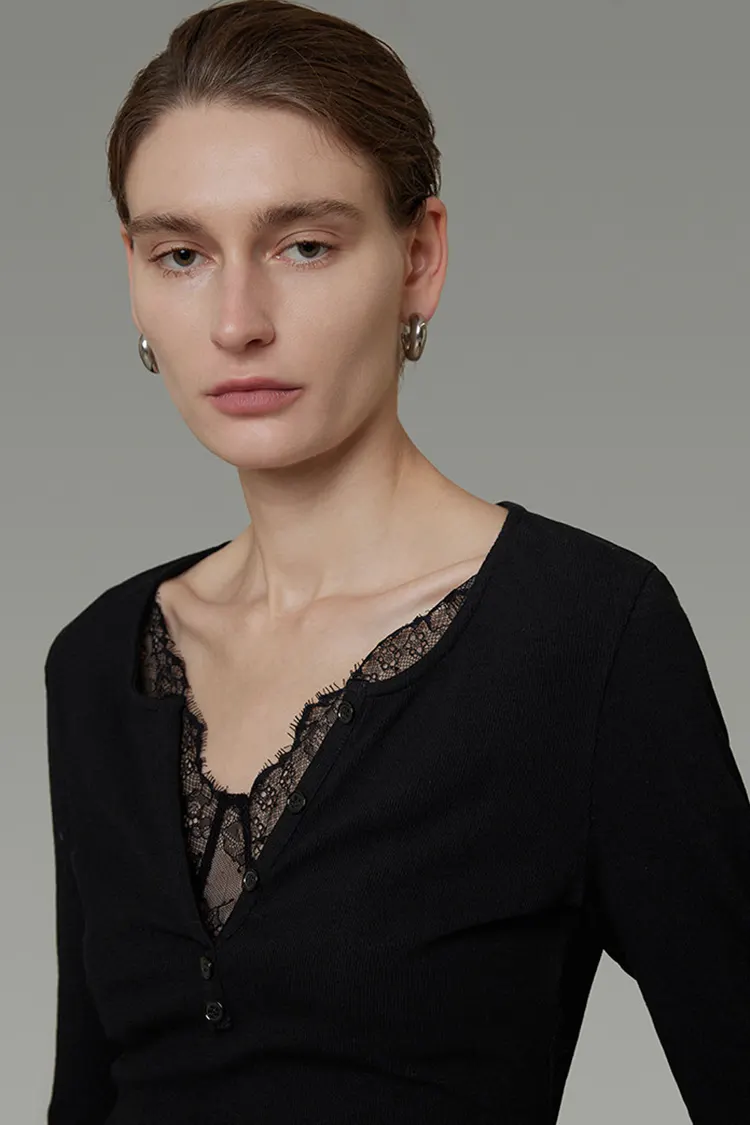 Áo len nữ cổ chữ V ren mỏng