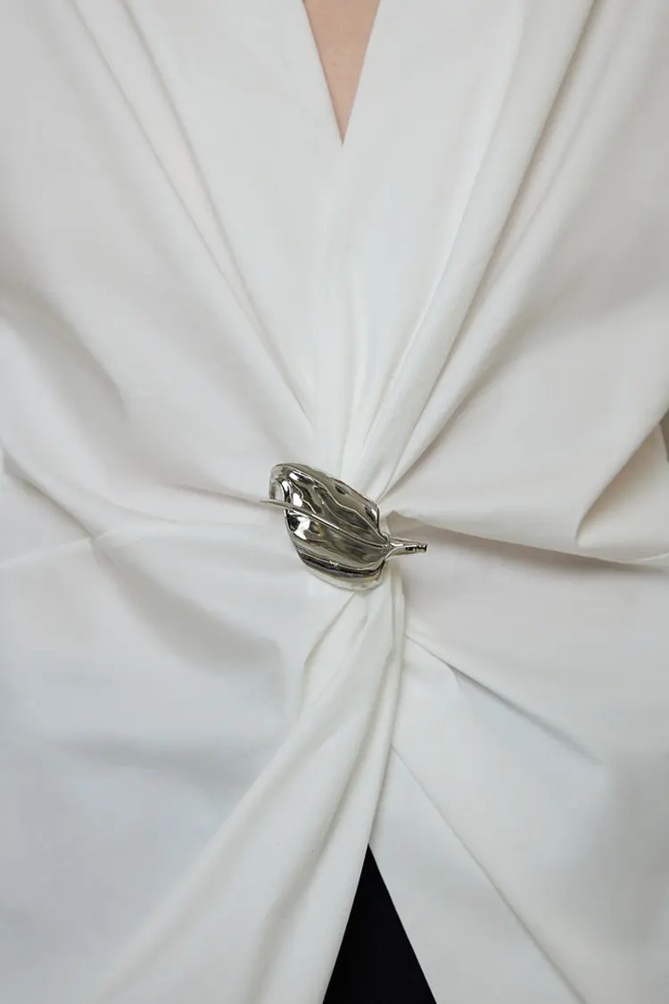 Áo dự tiệc khóa kim loại dành cho nữ có nút thắt lưng bất đối xứng kết hợp với nút kim loại ba chiều để trang trí. Trọng tâm thị giác nổi bật, ôm sát vòng eo một cách tự nhiên và làm nổi bật những đường cong. Nó cũng sử dụng các nếp gấp để làm mềm mại dáng người, mang lại độ linh hoạt cao cho nhiều kiểu cơ thể khác nhau. Cổ chữ V chéo gọn gàng, trang nhã, chất liệu vải mịn, sắc nét, nhẹ và không bị xẹp. Nó kết hợp tính thiết thực của một chiếc áo sơ mi để mặc hàng ngày với sự hấp dẫn thời trang của một chiếc áo dự tiệc, cho phép mặc linh hoạt và nhận diện hình ảnh mạnh mẽ.