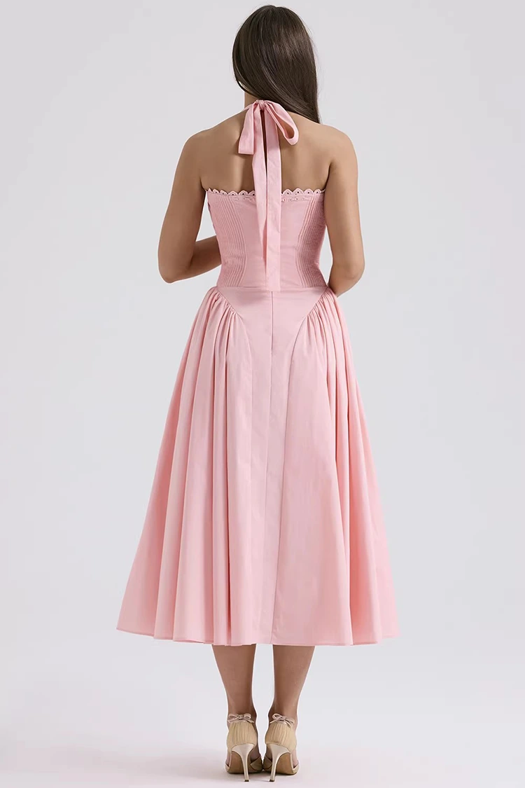 Váy MIDI cotton màu hồng dành cho nữ này có màu hồng đào nhẹ nhàng và mộng mơ, tông màu nhẹ nhàng không gây kích ứng da. Nó có thể làm sáng da một cách hiệu quả và toát lên vẻ lãng mạn và trẻ trung. Đồng thời, nó kết hợp sự sang trọng cổ điển và các yếu tố thời trang hiện đại. Cà vạt ở đường viền cổ áo có thể được điều chỉnh tự do để thắt chặt hoặc nới lỏng, có thể khéo léo phác thảo những đường nét thanh tú ở vai và cổ, tạo nên bầu không khí đầy đặn. Thiết kế thắt lưng xương cá ở phần trên vừa vặn với cơ thể, không gây cảm giác bóp mạnh. Nó có thể làm thon gọn vóc dáng một cách tinh tế, làm nổi bật đường cong eo và bụng. Các nếp gấp ở hai bên có thể che đi phần mỡ nhỏ ở eo và bụng, rất thân thiện với nhiều kiểu cơ thể khác nhau. Kiểu dáng dài vừa phải kết hợp với thiết kế không tay mang đến đường nét uyển chuyển, nhẹ nhàng và nhanh nhẹn khi bước đi. Độ cứng riêng của vải giúp hỗ trợ tốt cho thiết kế xương cá, giúp vải không bị mềm hay biến dạng, cân bằng cả vẻ đẹp và sự thoải mái.